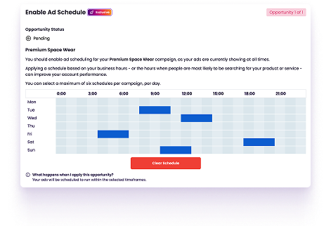 No. You always stay in control. Adzooma shows you the most important actions to take — ranked by impact and effort — but you decide what to apply, and when.