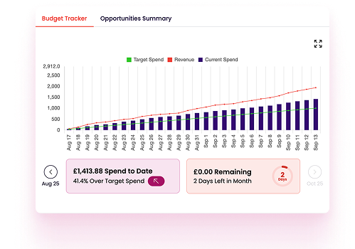 Adzooma’s Budget Tracking gives one clear view of your spend, helping you stay on pace, avoid overspend, and protect ROI automatically.