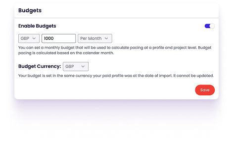 Head to the Budget Tracker tab to set your spend targets and start monitoring