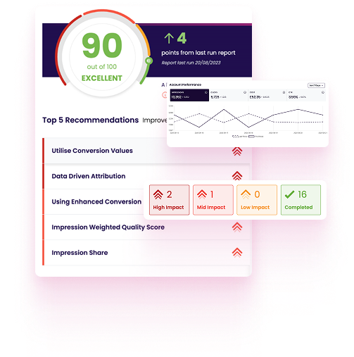 Stay ahead of your clients’ questions by spotting problems before they do. Adzooma’s daily checks and prioritised recommendations make it easy to prove value month after month.