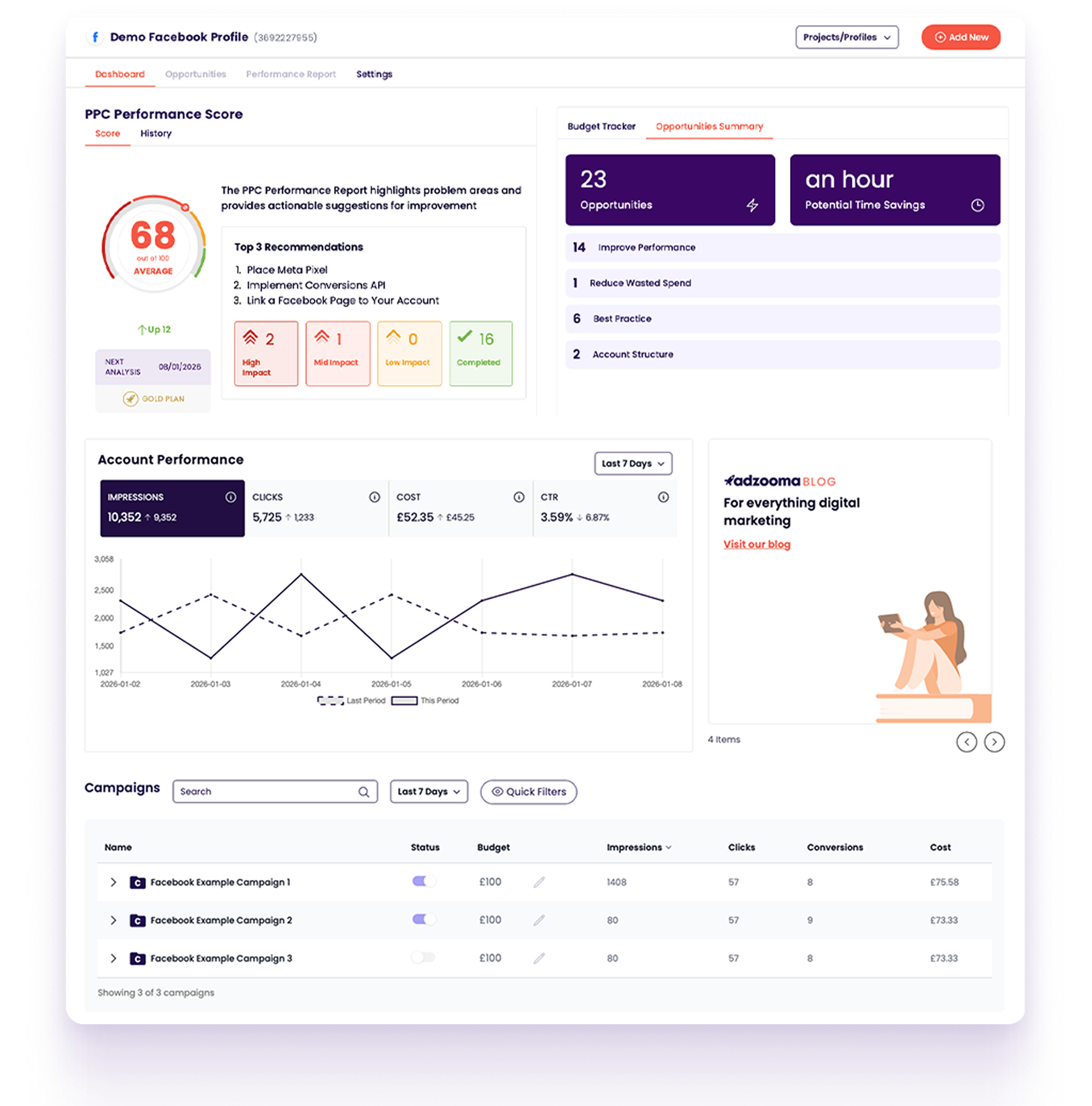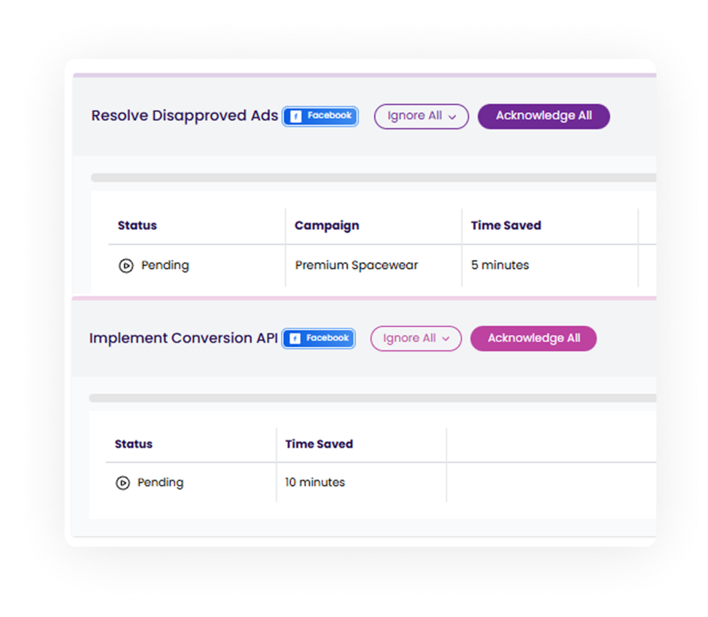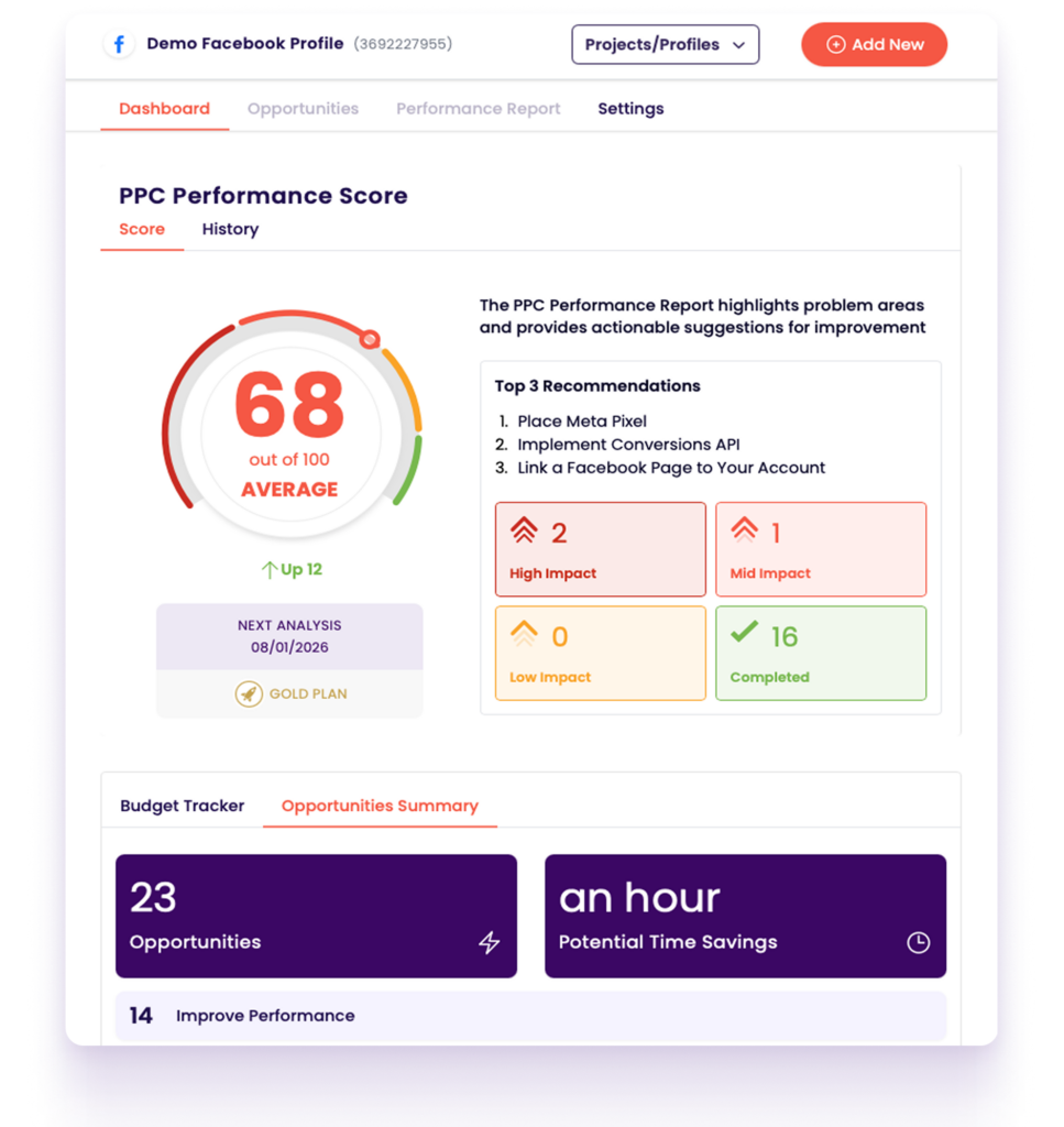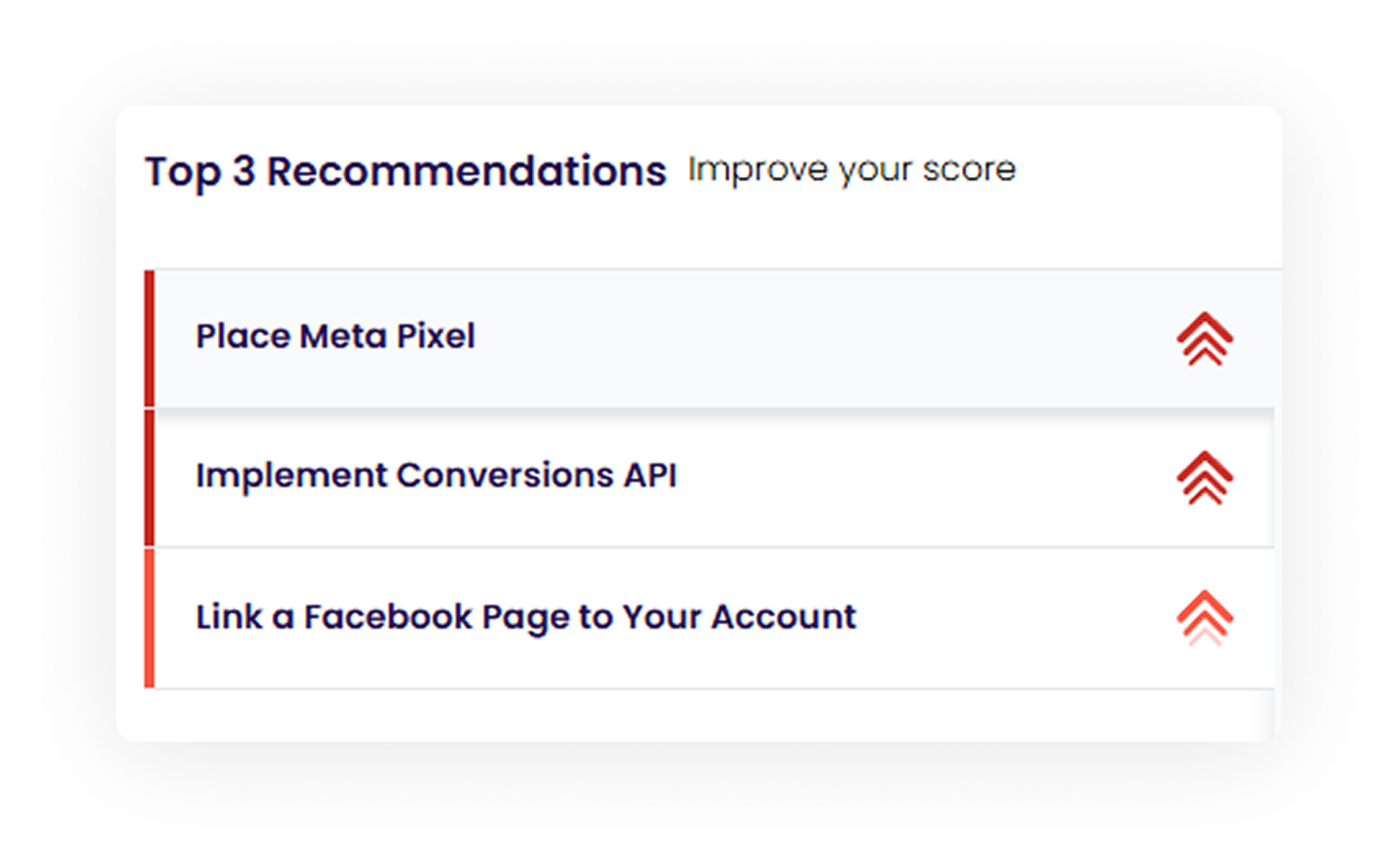 Every recommendation in your Meta Ads Performance Audit is ranked by impact and urgency - so you always know what to fix first.