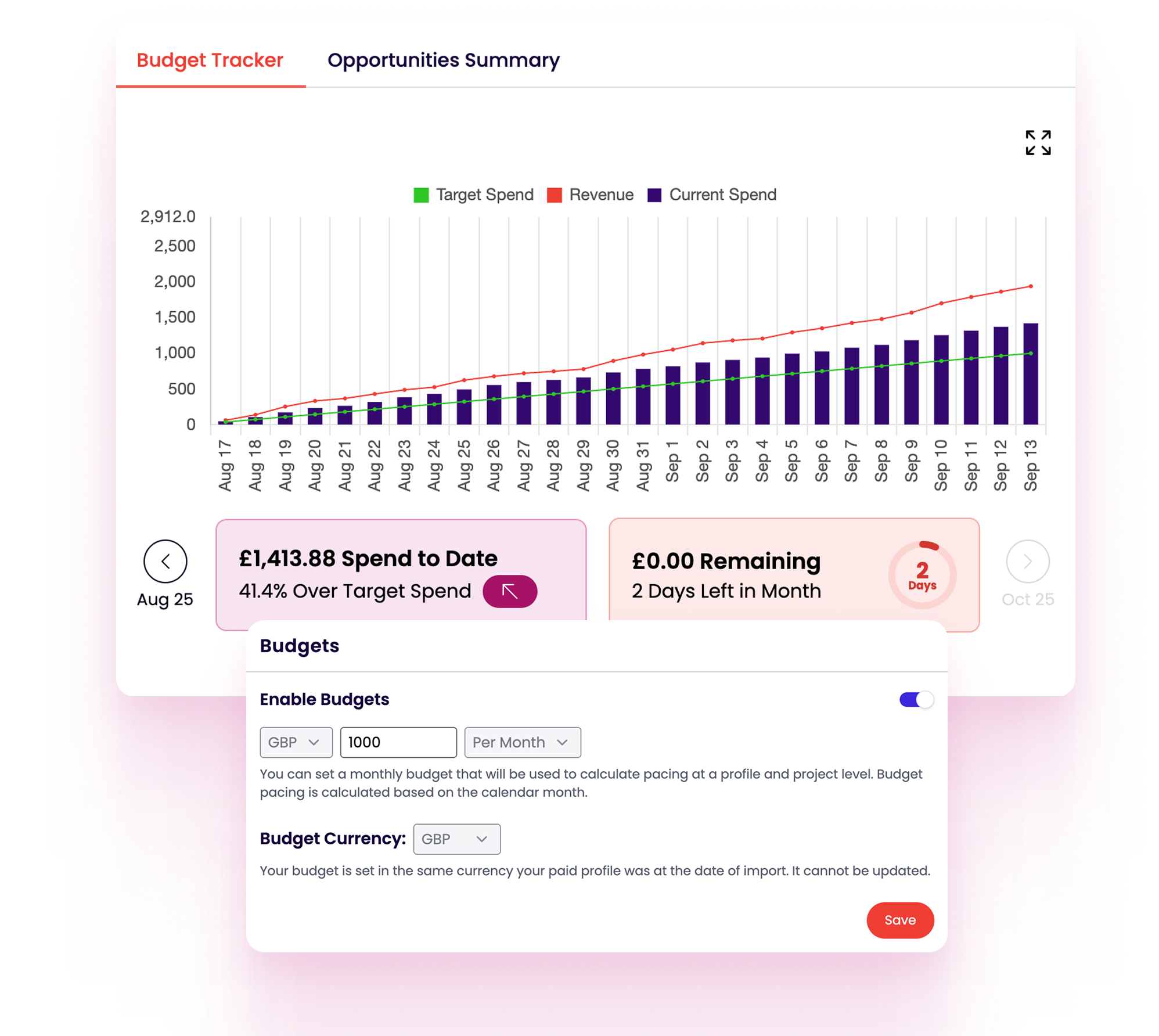 Yes. Adzooma connects your ad accounts into one dashboard, giving you daily spend monitoring so you don’t have to manual track in spreadsheets.