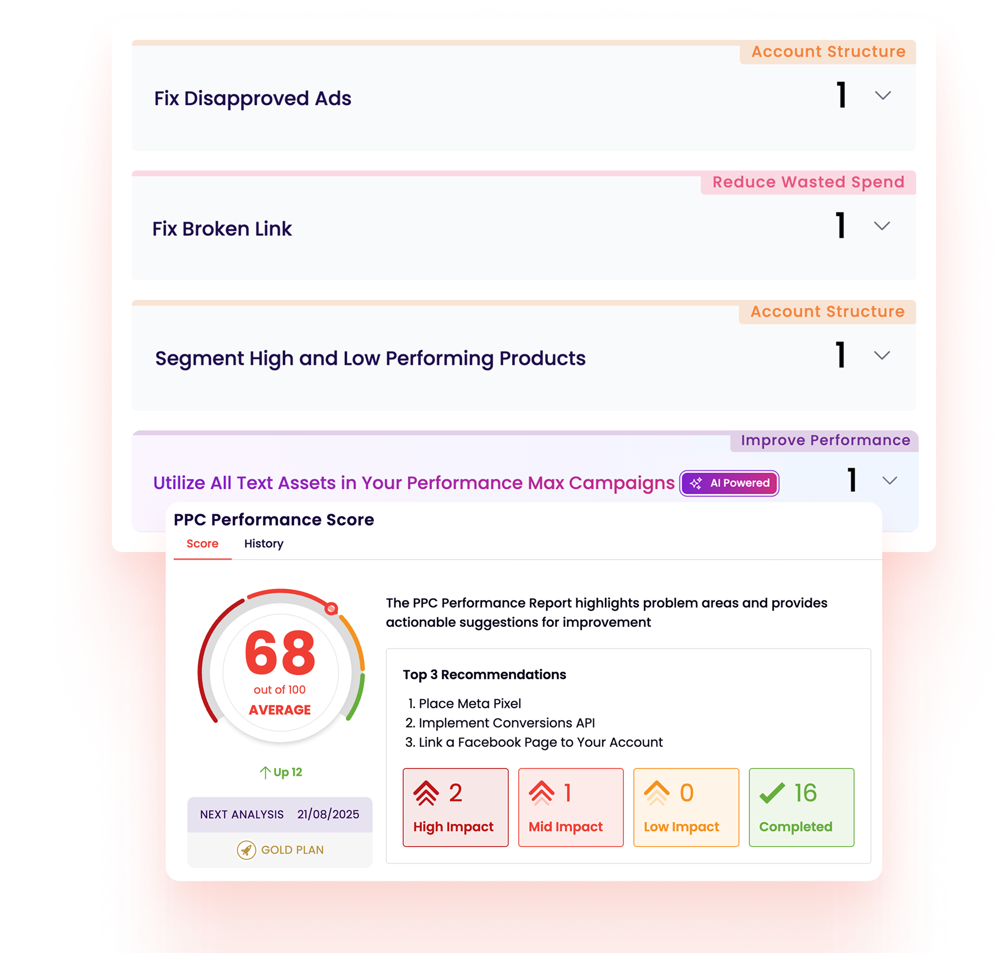 By running instant PPC audits, Adzooma flags disapprovals, tracking errors, and overspending. It ensures your budget is reinvested where ads perform best.