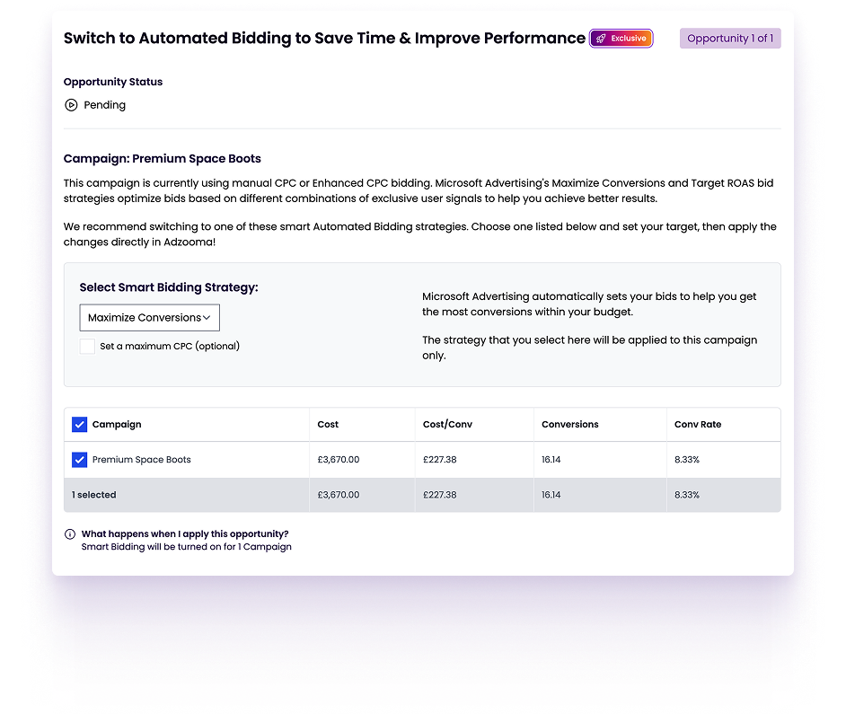 Yes. Adzooma surfaces targeting and bidding opportunities across all platforms, so you can manage them from one dashboard.